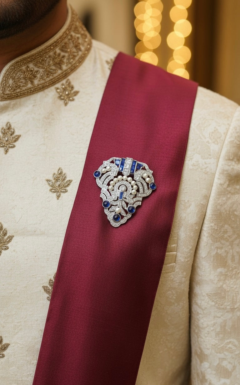 Features: Perfect for wedding sherwanis, bandhgalas, tuxedos, or even festive sarees and dupattas. This versatile brooch can be styled by both men and women for a royal finishing touch.